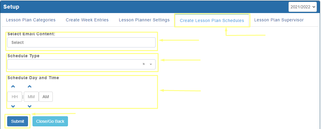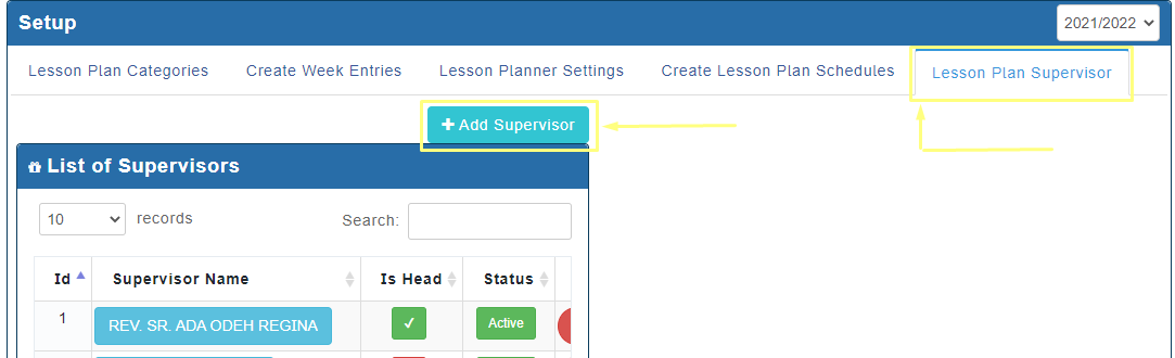 - Click on lesson plan supervisor Tab