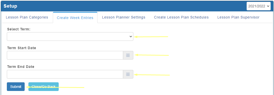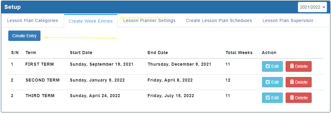 On the Educare platform, lesson plans are created weekly. This is where the weeks for the term are added based on when the term starts and when it will end and also the school Time table.