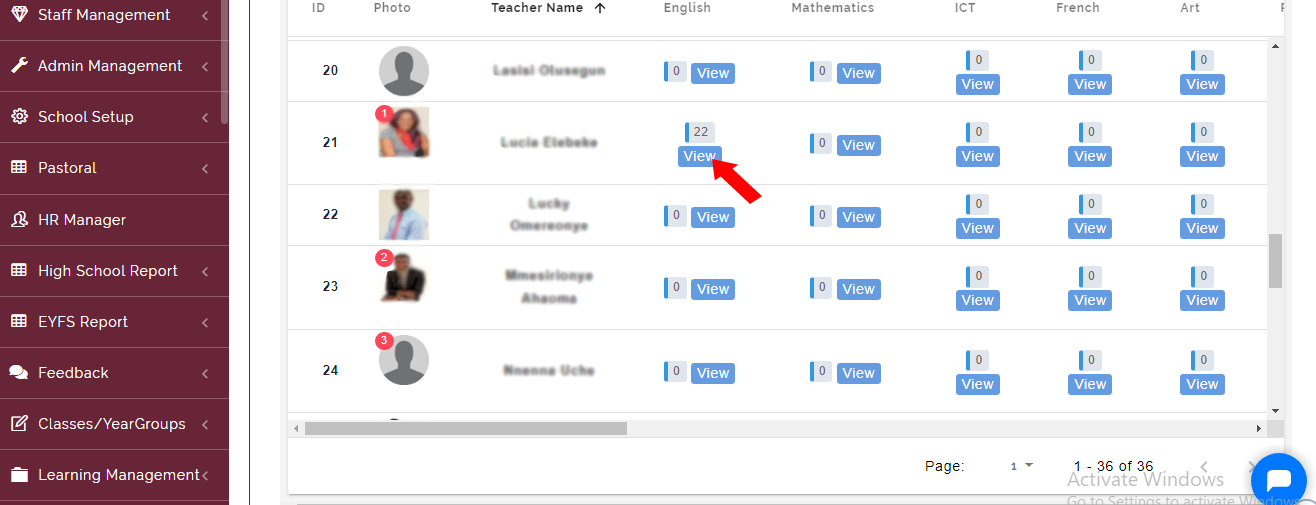 Click on view to see lesson plans made by each teacher under the subjects they teach as shown below.