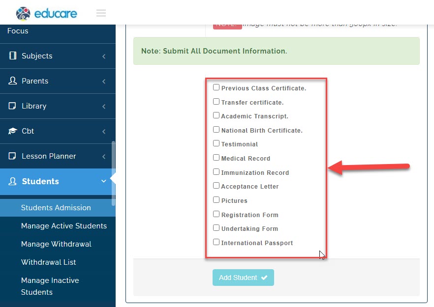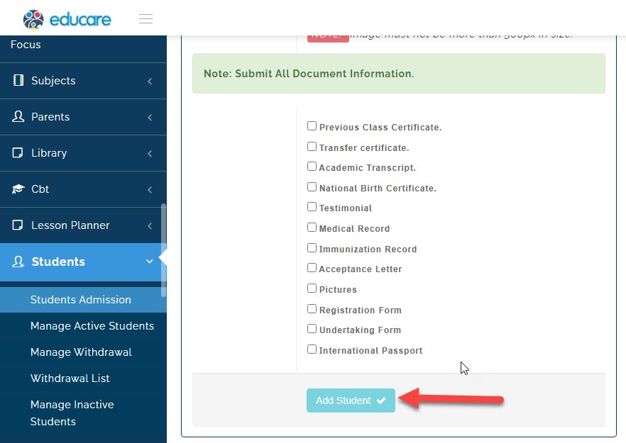 once you are through click on add student and the student admission process will be completed