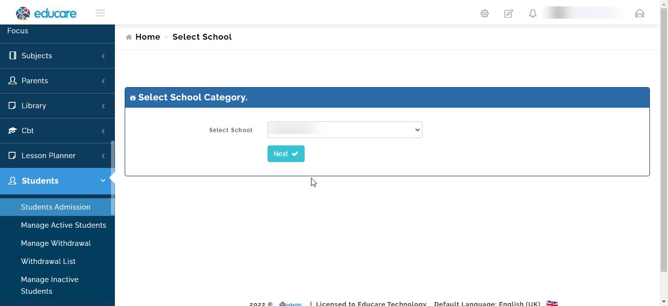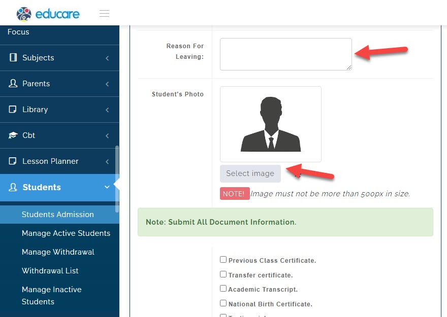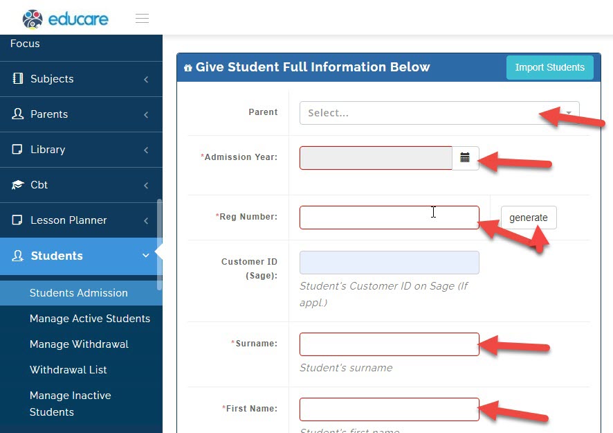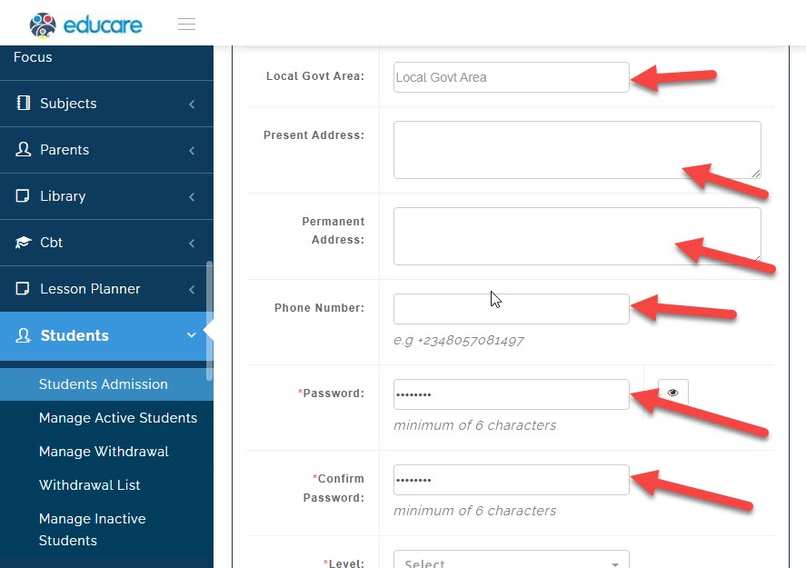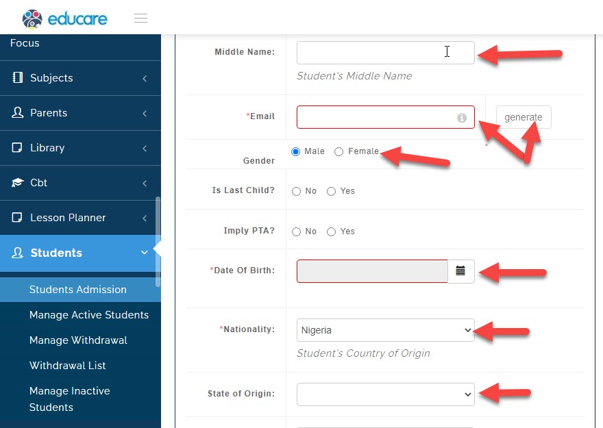 now you will need to filling in the details of the student.
