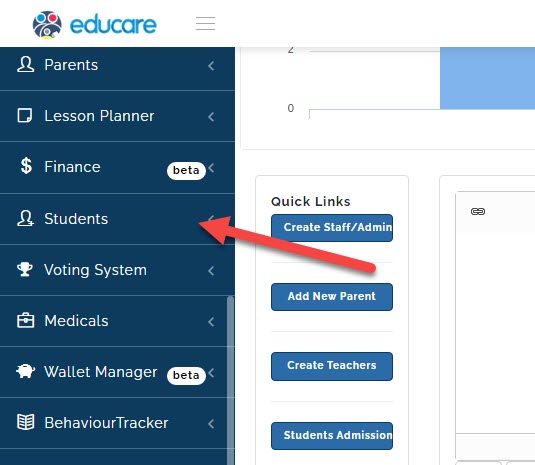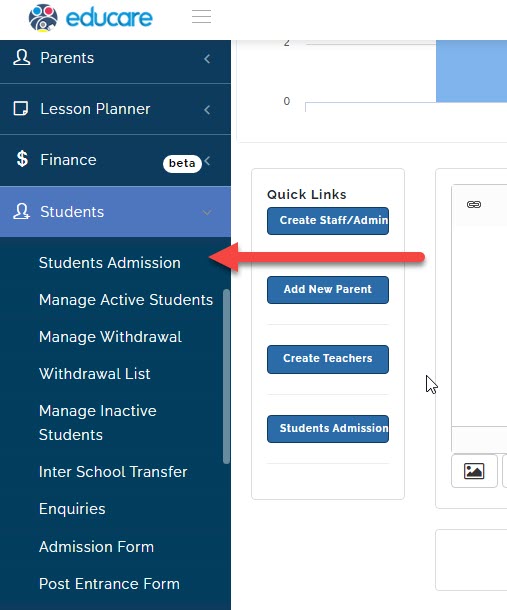 - click on students admission